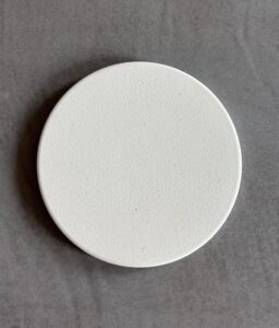 卵の殻をアップサイクルして生まれたコースター。1枚で約4個分の卵殻を再利用しています。多孔質な卵殻と土を混ぜ、焼成した卵のコースターは、抜群の吸水力でグラスについた水滴を素早く吸収し、吸った水も卵のチカラですばやく放湿します。