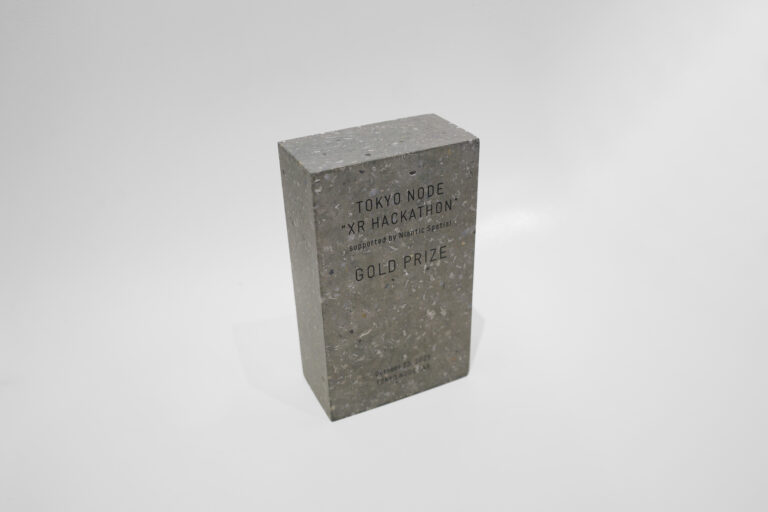イベントで発生した廃棄予定の資源を粉砕し、ブロックに混ぜ込んで成形しています。その街で生まれた資源を循環させて用いることで、「この街でしか生まれない」という街の記憶を刻むデザインのトロフィーを作り出しています。