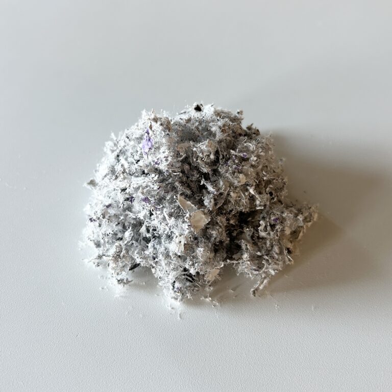 カラーチラシが混入した新聞紙をシュレッダーにかけたものを什器などに使用できるボードにしました。